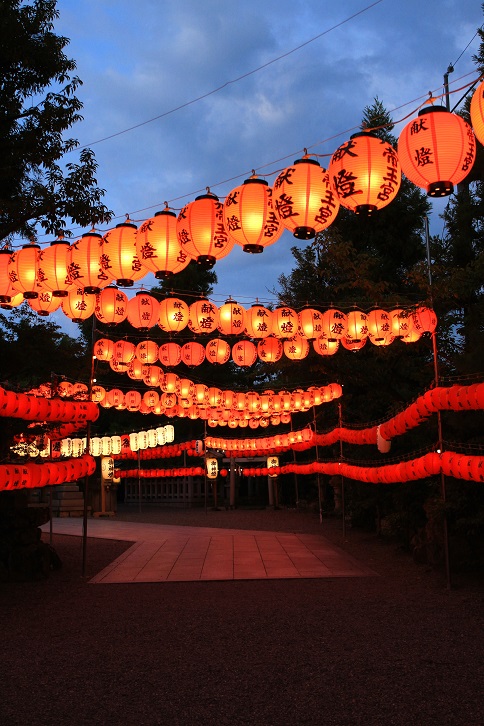夜風に揺れ秋の涼やかな音色を奏で赤い提灯と相まってさらに幻想的だ。