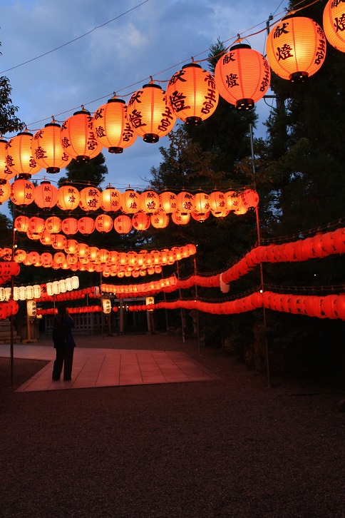 萱野神社へ。神社では8月末から9月1日の献燈祭まで提灯が点灯されていたが、今